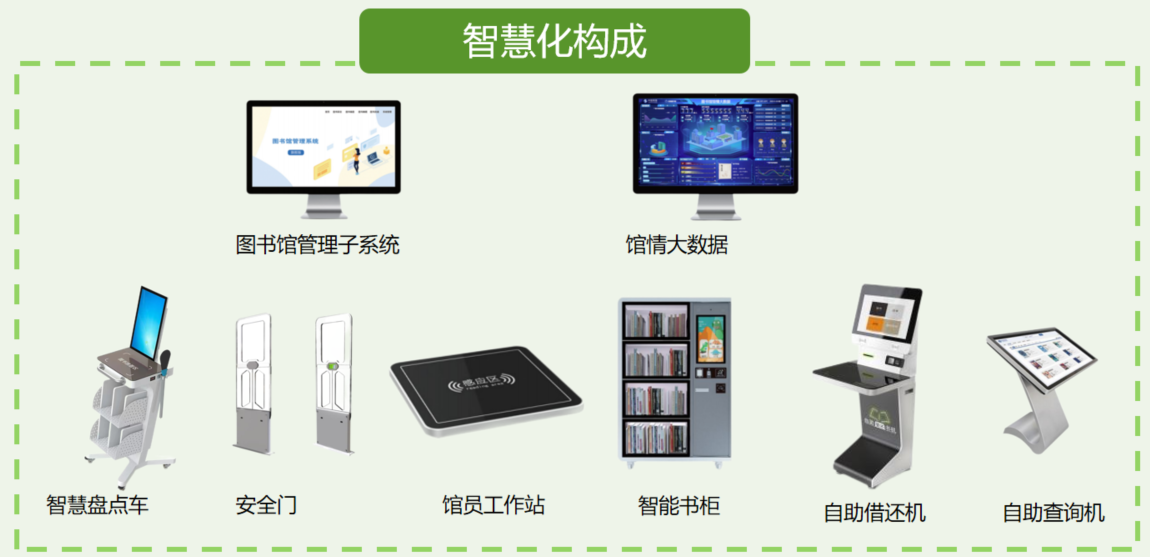 運用物聯網RFID、大數據、云計算等技術,通過RFID圖書電子標簽、RFID層架標簽、館員工作站、自助借還書機、安全通道門、移動盤點車、觸摸屏查詢一體機、智能書柜等RFID智能化設備,同時結合優質的空間設計能力,構建設施完善、功能完備、服務便捷的現代化智能圖書館。